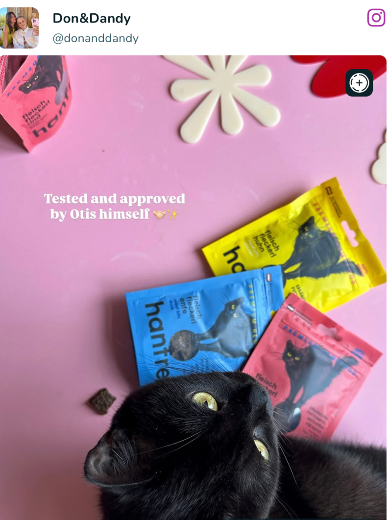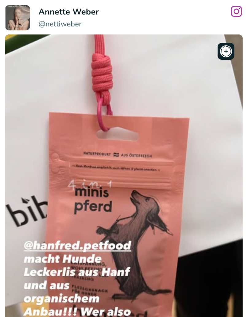 At the International Press Day in Munich, hanfred stood out as the only pet food brand among lifestyle and fashion labels, leading to strong editorial interest from titles such as Grazia, Glamour, Elle and InStyle. The direct exchange with editors resulted in extensive organic visibility beyond traditional coverage, driven by personal sharing and endorsement from style authorities like Annette Weber – Germany's original fashion influencer and former InStyle Editor-in-Chief – and Sophie Grützner, who now leads the title.